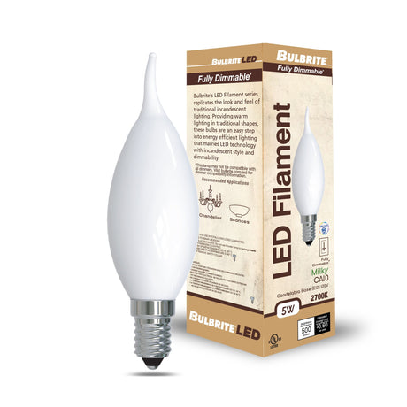 Bulbrite 404307, Incandescent Flame CA5 Light Bulb with E12 base, Frost, 2700K