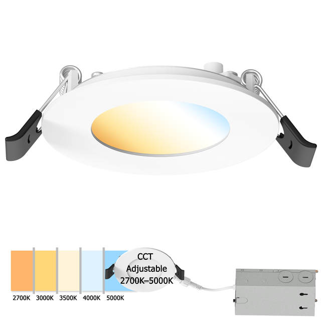 Elevate Slim Canless LED Downlights deliver architect-grade performance in a low-profile, ultra-thin housing designed for today’s modern residential and commercial spaces. Engineered with field-selectable wattage and 5CCT color tuning, this series gives installers and designers total flexibility at the time of installation—no need to stock multiple SKUs or guess the desired color temperature. Choose between warm 2700K and crisp 5000K and adjust lumen output to match small rooms, large open areas, or accent applications.