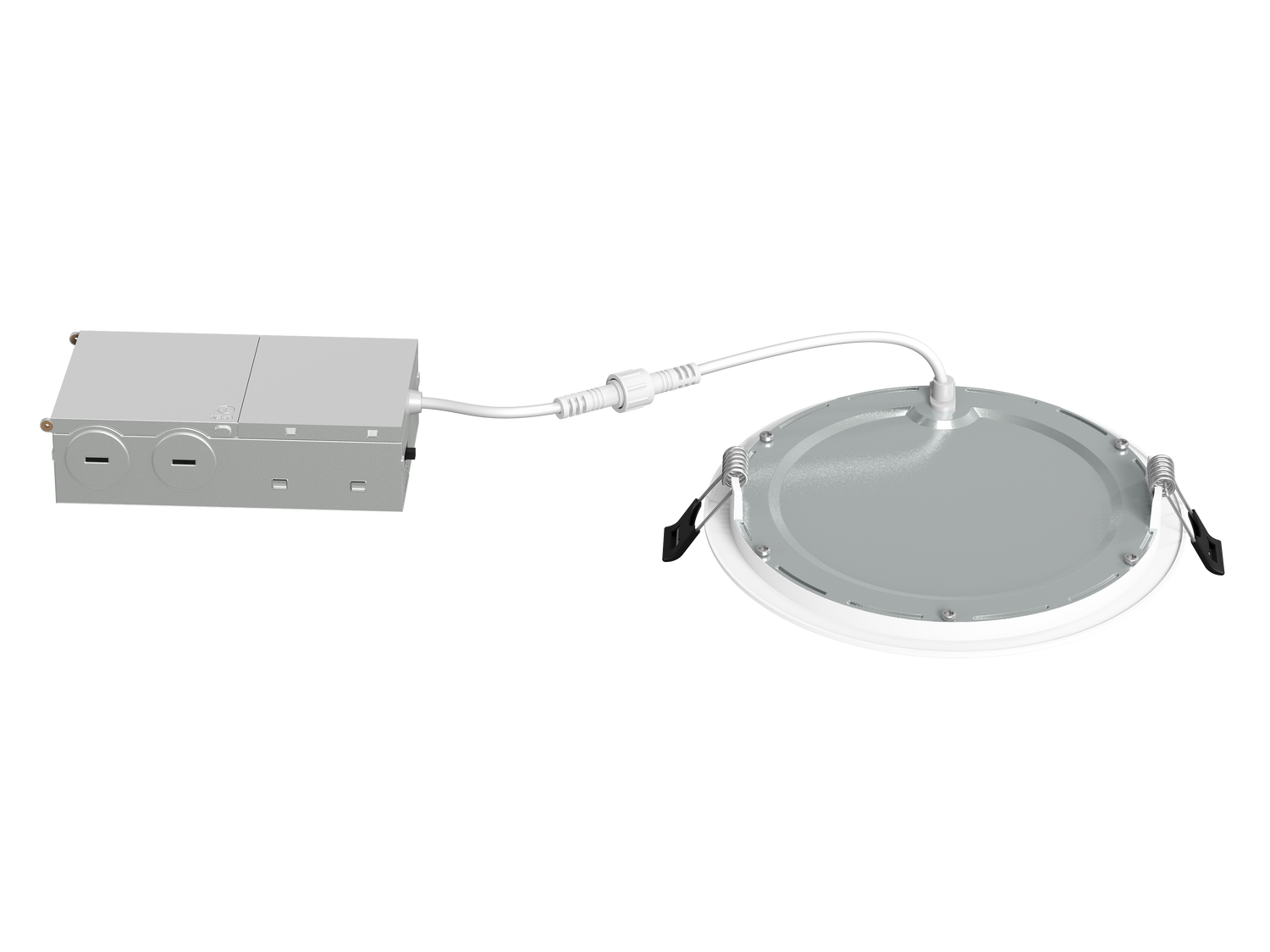 Built with a canless design, each fixture includes a remote junction box for fast, tool-free installs in tight ceiling cavities, including remodel applications and new construction. The ultra-thin profile ensures a clean, flush fit even in shallow plenums and tight spaces where traditional recessed cans won’t work. Rated for IC and airtight installation and approved for wet-location use, Elevate wafer lights are ideal for bathrooms, showers, kitchens, soffits, covered outdoor ceilings, and multi-unit commercial projects.