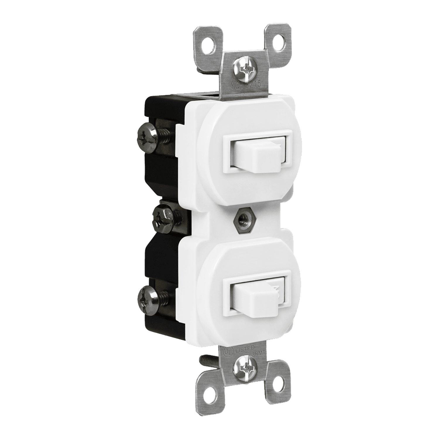 Enerlites 82150-W, Combination 15A Double Toggle Switches, Single Pole, White